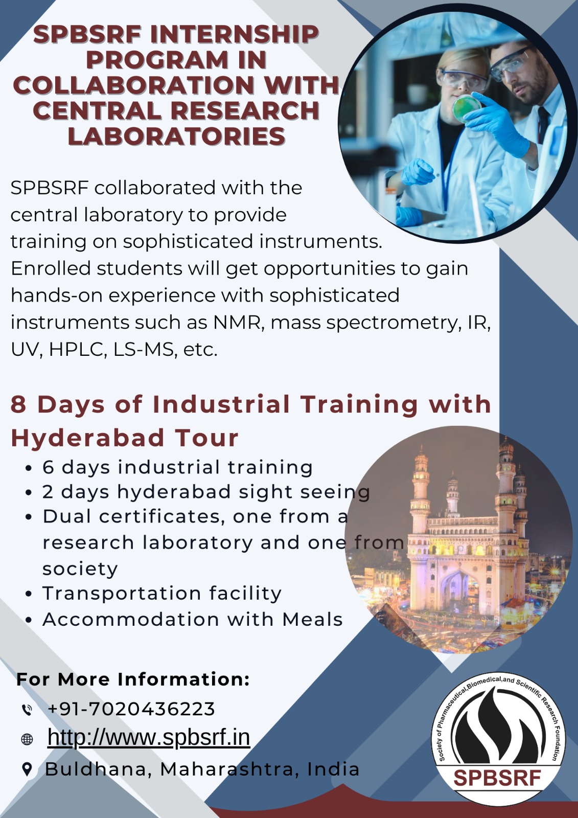 SPBSRF believes that this collaboration will provide students with valuable exposure to the latest technologies and techniques. This course will include total 8 days program with accommodation and food. It will have complete transportation facility within the city.